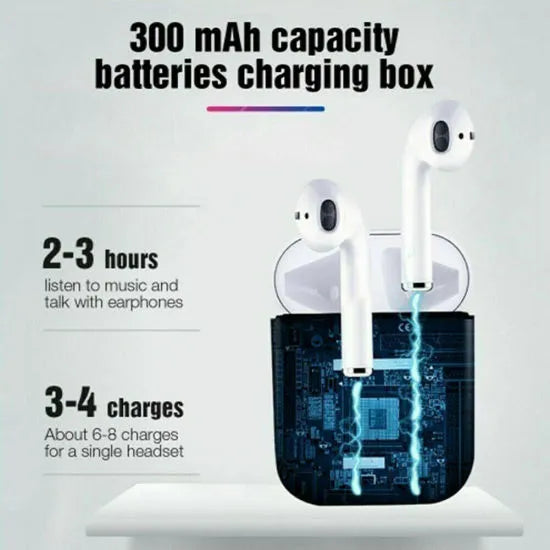 Airpods TWS 12 black Mini Bluetooth Wireless Headset With Charging Doc For Android & all Phones Wireless Earbuds with Noise Cancelling Microphone wireless earphones