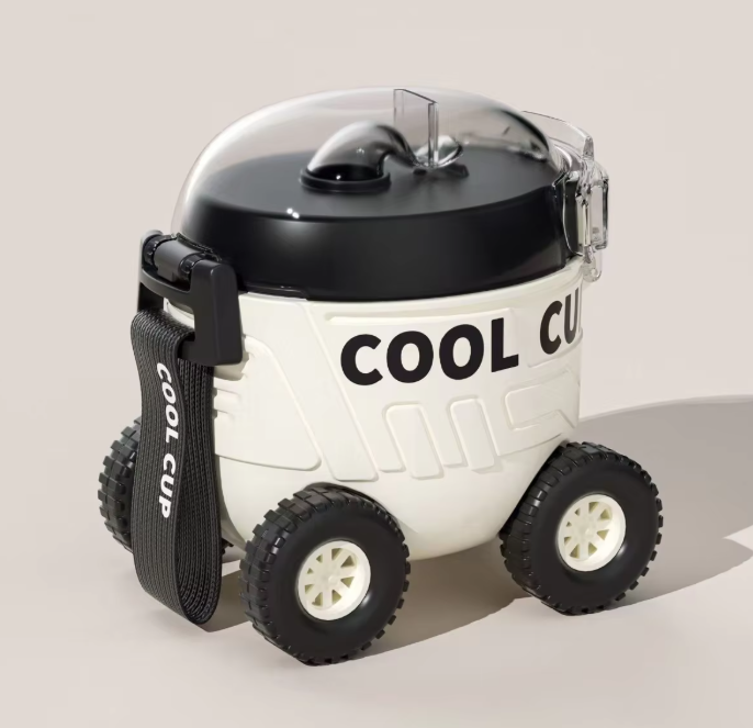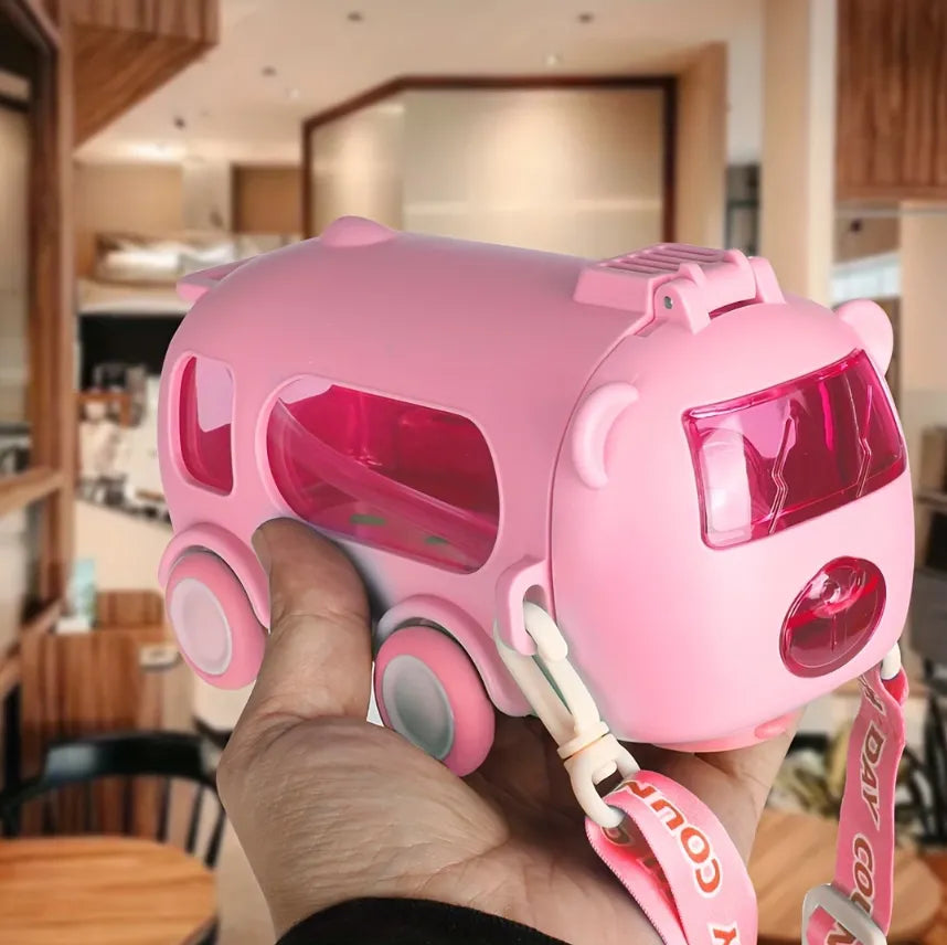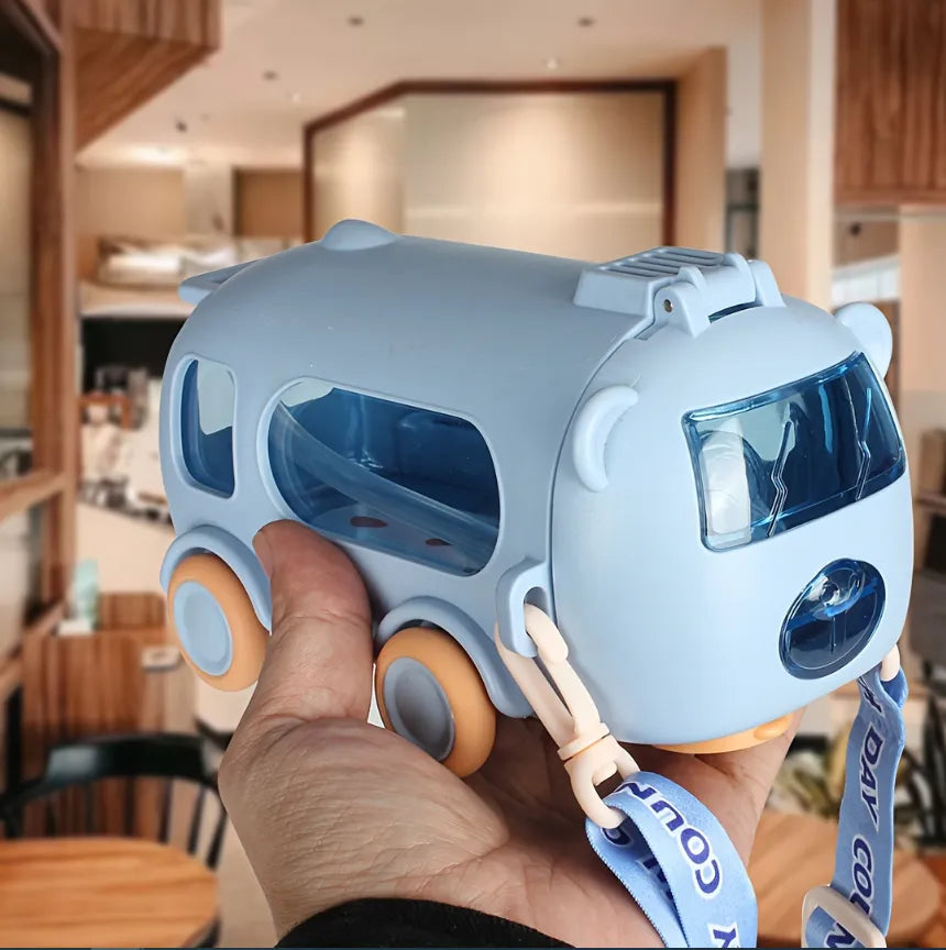 【Cute Cartoon Bus Design】Kids waterbottle a cartoon bus shape with movable wheels at the bottom. Made of eco-friendly food grade material, 100% BPA free.