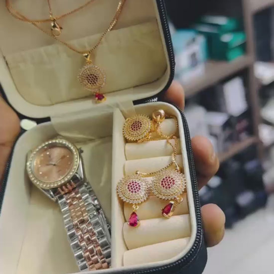 Ladies Gift Collection Set with Ladies Fortuner Stone Wrist Watch with Micro Zircon Combo set
